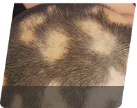 斑秃患者(一个或多个地方,头皮裸露不长头发)针对斑秃内因,采用中药调节自身免疫力或内分泌功能,外用650nm激光、空气负离子治疗等理疗设备生发。